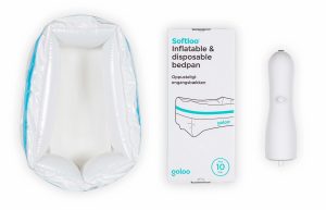 Softloo täytetään ilmalla helppokäyttöisellä pumpulla. Ilmatäytteinen alusastia on pehmeytensä ansiosta potilaan kannalta miellyttävämpi käyttää ja kestää jopa 270 kg maksimi-painon. Tuotteen sisällä oleva imeytyslevy pystyy sitomaan/imeyttämään itseensä virtsaa n. 700 ml. Käytä Softloota tavallisen alusastian tavoin. Kertakäyttökäsineet ja WC-paperi voidaan hävittää Softloon sisällä. Kun potilas on valmis, sulje Softloo sinisellä teipillä ja hävitä se poltettavan jätteen (erite) mukana, samaan tapaan kuin vaipat.